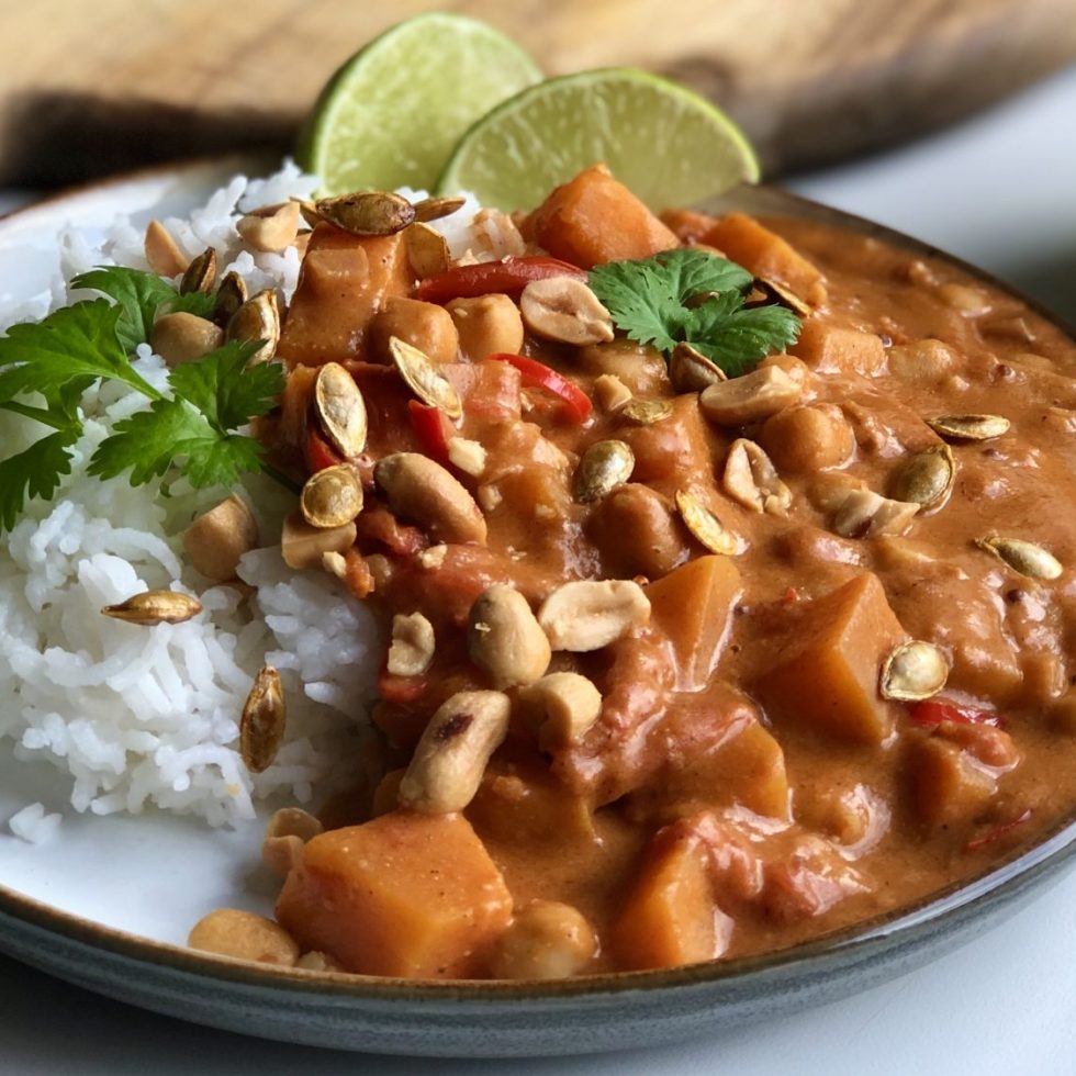 Butternut squash in spicy peanutbutter coconut chili curry