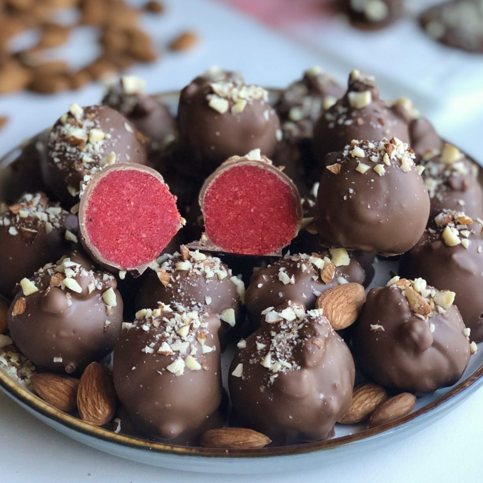 Hjemmelagde marsipankuler med sjokolade og mandler